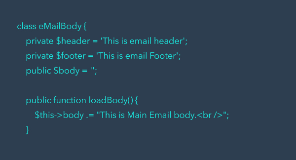 E-posta direkt olarak bir class ‘ a bağlanmış ve gerekli olan işlevler buradan sürdürülmektedir. Private ile mesajlar verilmiş bu sayede ilk adımda atılmış olmaktadır.
